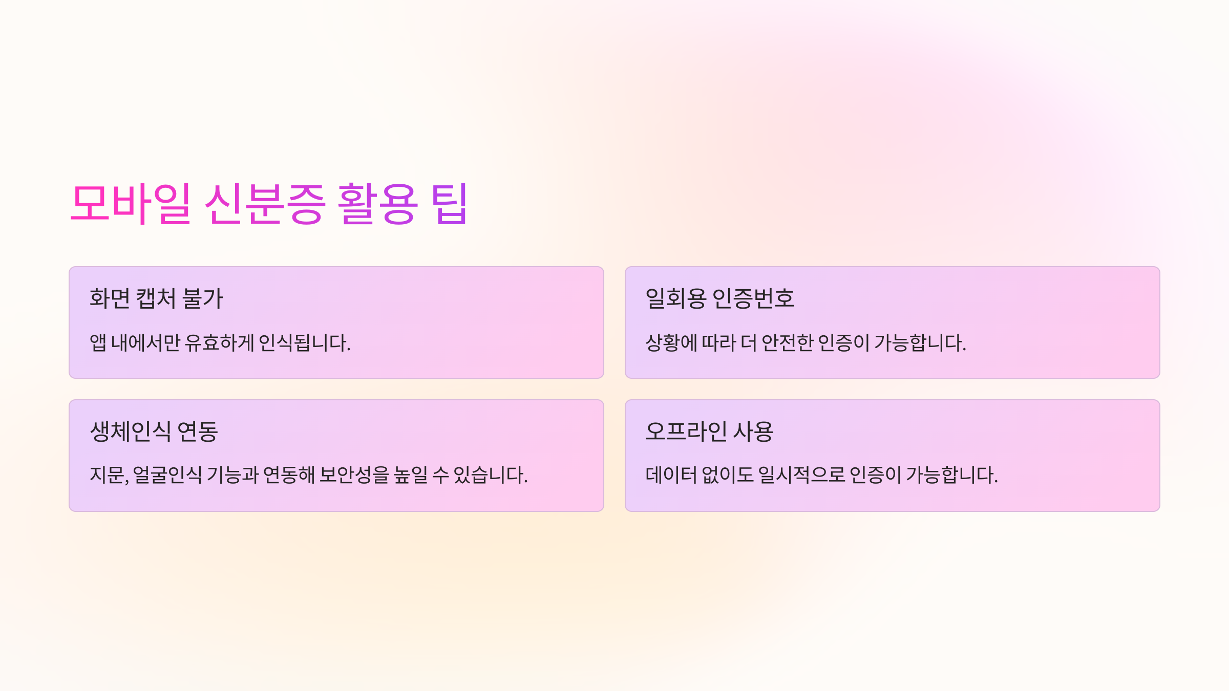 - 📆 유효기간은 실물 신분증과 동일 (예: 주민등록증은 별도 만료일 없음)
