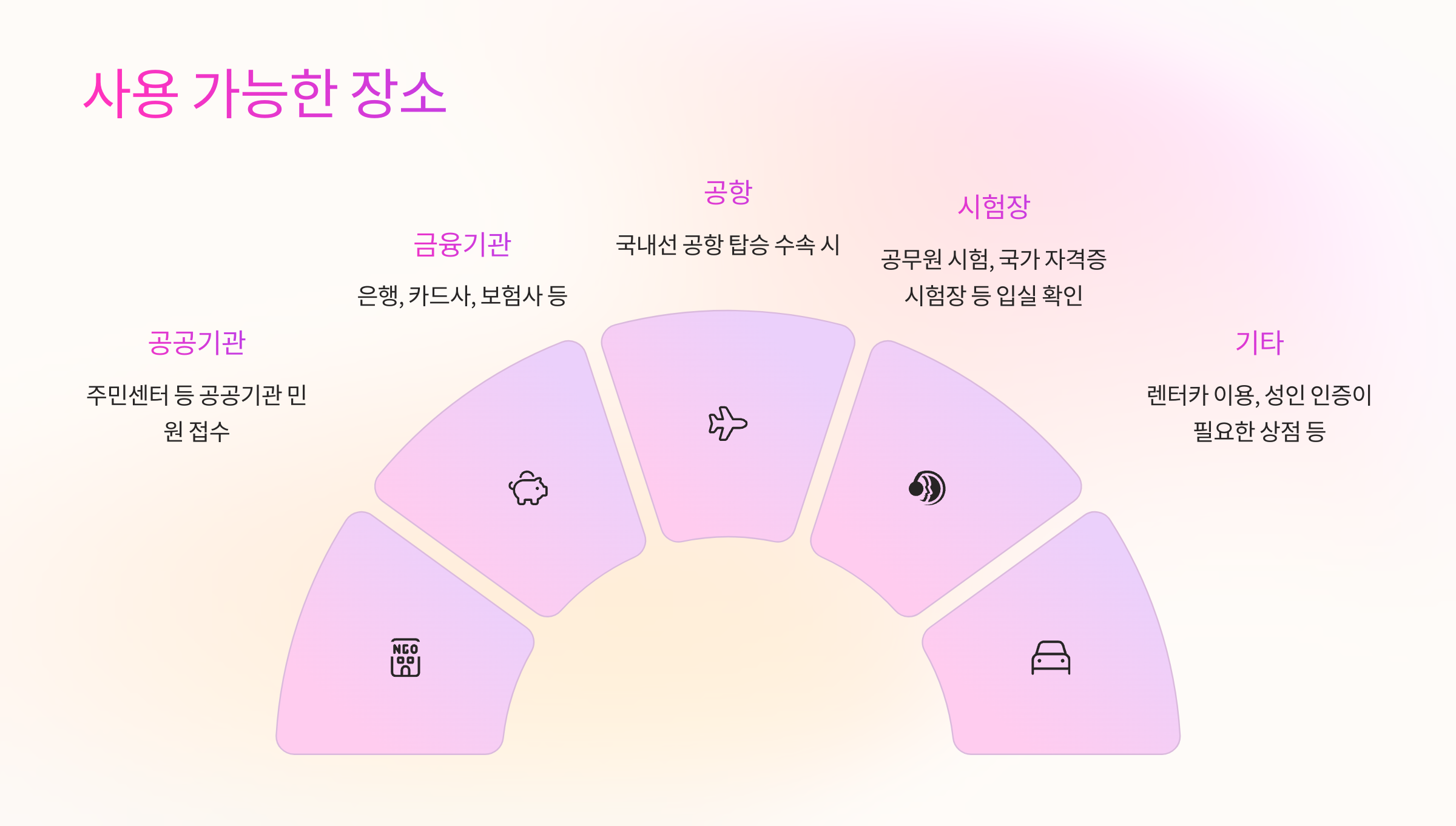 모바일 신분증은 다양한 분야에서 실물 신분증과 동일하게 사용할 수 있어요.